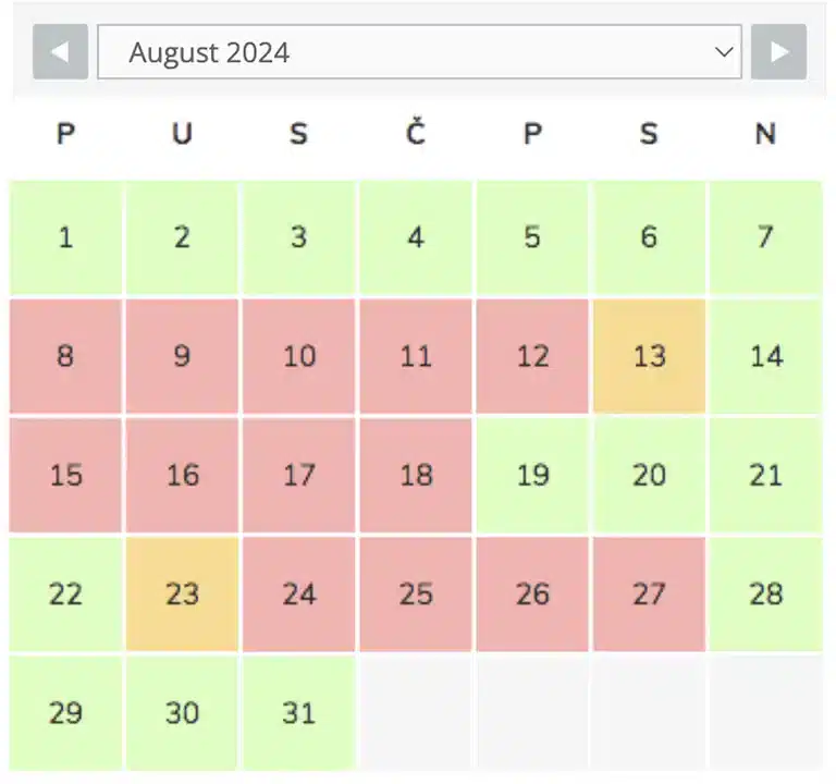Posjetitelji jednostavno pregledavaju kalendar i odmah vide koji su datumi slobodni za rezervaciju. Ako je omogućena opcija “tooltip”, mogu zadržati pokazivač miša iznad datuma kako bi vidjeli dodatne informacije, poput napomena ili cijena. Ovo je izrazito korisno kada vi kao vlasnik apartmana želite dati neku dodatnu informaciju samo za te dane, npr.: Apartman će iznimno biti slobodan za nove goste tek u 18h.